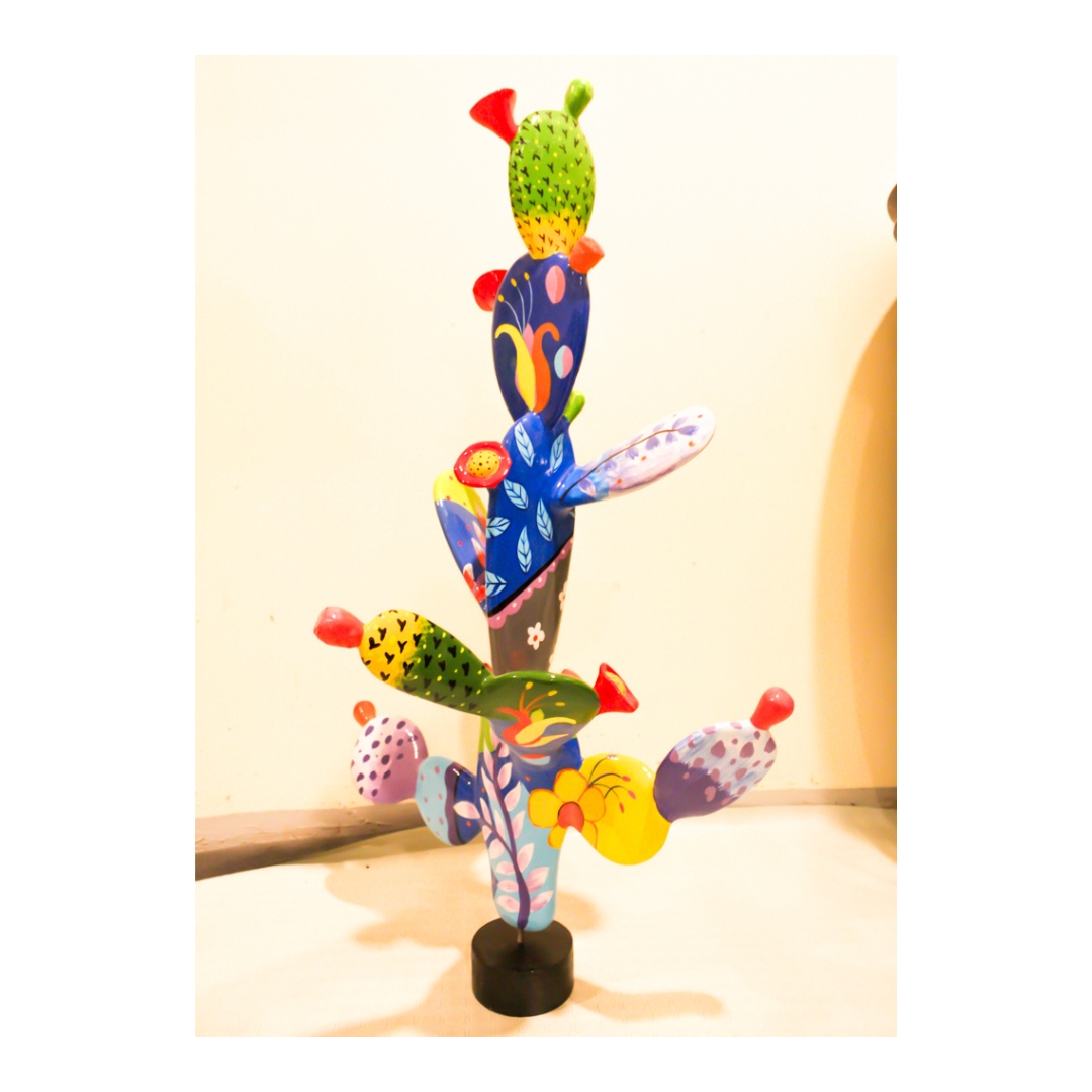 This Prickly Beauty is a playful twist on desert charm. Bursting with vibrant hues and quirky details, this cactus figurine transforms the rugged beauty of the desert into a cheerful and artistic statement piece. Its imaginative design, featuring exaggerated shapes and bold patterns, brings a lively and unexpected energy to any space. Let this piece turn your home into a vibrant oasis of creativity and fun!